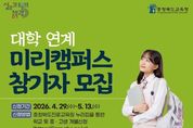 (포탈뉴스통신) 충청북도교육청 직속기관 진로교육원은 도내 중‧고등학생의 진로설계 역량 강화를 위해 '2026. 대학연계 미리캠퍼스 프로그램'을 확대 운영한다고 밝혔다. '미리캠퍼스'는 지역 대학과 연계한 진로교육을 통해 학생 개개인의 흥미와 적성에 맞는 진로 탐색 기회를 제공하고, 자기주도적 진로설계 역량을 함양하기 위한 프로그램이다. 올해는 참여 대학을 기존 8개교에서 10개교로 확대하고, 도내 대학뿐만 아니라 충청권 대학까지 연계를 확장해 학생들의 전공 선택 기회를 넓혔다 총 10개 대학이 참여해, 대학 캠퍼스로 찾아가는 '학과전공체험' 102개 프로그램과 학교로 찾아오는 '대학전공특강(체험)' 62개 프로그램 등 160여 개 이상의 전공 체험 및 특강을 운영하며 학생 맞춤형 진로체험 기회를 폭넓게 제공한다. 운영 분야는 ▲반도체‧AI‧로봇‧스마트팩토리 등 첨단기술 ▲항공‧자동차‧전기‧건축 등 공학‧모빌리티 ▲간호‧보건‧재활‧응급구조 등 의료‧보건 ▲반려동물‧뷰티‧호텔조리‧카페 등 생활‧서비스 ▲경영‧교육‧인문‧예술 등 인문사회 및 문화예술 분야까지 균형 있게 구성됐다. 이를 통해