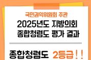 (포탈뉴스통신) 서산시의회는 지난 23일 국민권익위원회(이하 국민권익위)가 발표한 ‘2025년 종합청렴도 평가’에서 2등급을 달성했다. 이번 평가는 매년 국민권익위가 전국 243개 광역·기초의회를 대상으로 △청렴체감도, △청렴노력도, △부패실태 3개 분야를 종합하여, 결과에 따라 지방의회별 청렴도 등급을 공개한다. 서산시의회는 전년도 대비 청렴체감도에서 한 단계 상승한 2등급, 청렴노력도는 3등급을 기록하며, 전국시의회 평균을 상회하는 성적으로 종합청렴도에서 2등급을 획득했다. 서산시의회는 그동안 청렴도 향상을 위해 △반부패 추진 계획 수립, △부패 유발요인 정비, △부패방지 제도 구축, △이해충돌 방지제도 이행력 제고, △고위직 청렴 교육 실효성 제고 등 다양한 노력을 추진해왔다. 조동식 의장은 “이번 종합청렴도 평가에서 한 단계 상승한 2등급 달성은 우리 의회의 청렴 운영 노력이 대외적으로 인정받은 결과”라며, “앞으로도 더욱 청렴하고 투명한 의회를 만들기 위해 최선을 다하겠다”고 전했다. [뉴스출처 : 서산시의회]