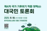 (포탈뉴스통신) 기후에너지환경부은 11월 19일 한국프레스센터(서울 중구 소재)에서 ‘제4차 국가 기후위기 적응대책(2026~3030)’ 관련 대국민 토론회를 개최한다. 이번 토론회는 정부와 국민이 한 데 모여 기후위기에 적극 대응하는 대책을 논의하기 위해 마련됐다. 기후에너지환경부는 적응대책 수립을 위해 ‘기후위기 적응 국민포럼’을 시작으로 관계기관, 전문가, 산업계, 시민사회 등 사회 각 부문의 의견을 모아 제4차 적응대책의 초안을 마련했다. 그간의 의견수렴 결과 국민과 전문가들은 공통적으로 기후위기로 인한 사회 각 부문(재난, 농·수산, 생계, 건강 등)의 피해를 저감하기 위해 사회 전부문을 아우르는 대책 마련이 시급하다는 점을 강조했다. 아울러 산업계와 취약계층 대상으로는 현장의 실태조사를 기반으로 실제 수요에 부합하는 맞춤형 지원이 필요하다는 점을 역설했다. 이번 토론회에서는 의견수렴 과정에 참여했던 학계, 시민사회, 청년단체 등 각 부문의 국민들이 직접 참석하여 제4차 적응대책(안)을 검토할 예정이다. 제4차 적응대책(안)의 주요 내용은 기후위기 대응을 위해 국가 기반시설(인프라)을 개선