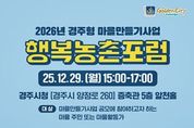 (포탈뉴스통신) 경주시가 오는 29일 오후 3시부터 5시까지 청內 알천홀에서 주민·전문가·행정이 함께 참여하는 ‘경주시 마을만들기 행복농촌포럼’을 개최한다. 이번 포럼은 농촌이 단순한 거주공간을 넘어 서로 돌보고 함께 살아가는 공동체의 터전이라는 인식 아래, 인구 감소와 고령화, 생활방식 변화 등으로 농촌 지역이 직면한 과제에 대응하기 위해 마련됐다. 경주시는 이번 포럼을 통해 농촌지역 활성화 전략과 마을만들기 추진체계의 의미 있는 미래 방향이 폭넓게 논의될 것으로 기대하고 있다. 행복농촌포럼은 경주시 마을만들기 정책 방향 발표를 시작으로 전문가 초청 주제 특강, 우수사례 발표와 질의응답 등으로 구성된다. 특히 2026년부터 단계적으로 추진될 ‘경주형 마을만들기 사업’의 주요 변경 사항과 추진체계 개편 방향을 집중적으로 다룰 계획이다. 주낙영 경주시장은 “그간 농촌공간정비사업과 기초생활거점사업, 농촌중심지 활성화사업 등 다양한 농촌개발 사업을 추진해왔다”며 “이번 포럼을 계기로 지역별 특성에 기반한 맞춤형 농촌 발전 전략을 더욱 강화해 나가겠다”고 말했다. [뉴스출처 : 경상북도경주