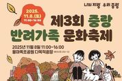 (포탈뉴스통신) 중랑구는 오는 11월 8일 토요일 오전 11시부터 용마폭포공원 다목적 광장에서 ‘제3회 중랑 반려가족 문화축제’를 개최한다. 중랑구가 주최하고 ㈜한국어질리티연합이 주관하는 이번 축제는 반려인과 비반려인 모두가 함께 즐기며 사람과 동물이 조화롭게 공존하는 문화를 조성하기 위해 마련됐다. 축제는 무대존, 플레이존, 부스존 등 3개 구역에서 다채로운 볼거리와 즐길 거리를 제공한다. 개회식은 오후 1시부터 류경기 중랑구청장 등 주요 내빈과 지역 주민 200여 명이 참석한 가운데 진행된다. 사전 공모된 ‘2025 중랑 유기동물 입양 사진·수기 공모전’ 시상식이 함께 열리며, 시상식 이후에는 반려견 능력시험과 더불어 행운권 추첨 등 다양한 프로그램이 진행돼 축제의 흥을 돋울 예정이다. 무대존에서는 중랑 K-댕댕이 헌터즈 펫션쇼와 같은 다양한 프로그램이 하루 종일 펼쳐진다. 플레이존은 반려 스포츠와 활동적인 체험 공간으로 구성된다. 펫티켓 5 미션게임, 어린이 훈련사 체험과 반려견 올림픽(기다려·이리와·찾아줘 대회)이 운영되며, 아시아 어질리티 챔피언십 한국 국가대표팀의 시범 공연을 통해 반려