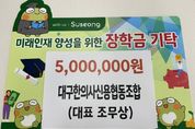 (포탈뉴스통신) 대구한의사신용협동조합(대표 조무상)은 지난 19일 지역 인재 육성과 교육 발전을 위해 장학금 500만 원을 수성미래교육재단에 기탁했다. 대구한의사신용협동조합은 2021년부터 매년 500만 원씩 장학금을 기탁해 현재까지 총 2,500만 원을 수성미래교육재단에 전달했으며, 지역사회와의 상생을 위해 자선사업과 불우이웃 돕기에도 꾸준히 참여하고 있다. 조무상 대표는 “미래 인재를 양성하고 지역 사랑을 실천하고자 조합원들의 마음을 담아 장학금을 기탁했다”며 “경제적으로 어려움을 겪고 있는 학생들을 위해 다양한 교육사업을 펼쳐주길 바란다”고 말했다. 김대권 이사장은 “수성미래교육재단에 대한 변함없는 관심과 지원에 깊이 감사드린다”며 “기탁해 주신 뜻을 소중히 새겨 학생들에게 실질적이고 지속적인 도움이 될 수 있도록 사용하겠다”고 말했다. [뉴스출처 : 대구시 수성구]