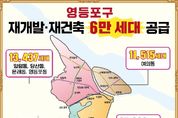 (포탈뉴스통신) 영등포구가 관내 재개발‧재건축 사업을 통해 총 6만 세대 규모의 주택 공급을 추진하며, 서울 도심 속 명품 주거단지 조성에 박차를 가하고 있다고 밝혔다. 구에 따르면 올해 3월 31일 기준 관내 정비사업을 통해 총 60,623세대의 대규모 공급이 계획된 것으로 확인됐다. 이는 노후 주거지의 환경 개선은 물론, 서울 도심 내 안정적인 주택 공급 기반을 강화하는 데 기여할 것으로 기대된다. 이번 정비사업은 특정 지역에 치우치지 않고 구 전역에 걸쳐 고르게 추진되는 것이 특징이다. 권역별 공급 규모는 ▲신길‧영등포본동 27,233세대 ▲양평‧당산‧문래‧영등포동 13,437세대 ▲여의동 11,515세대 ▲도림‧대림동 8,438세대 순이다. 먼저 가장 큰 비중을 차지하는 신길‧영등포본동은 신길뉴타운을 중심으로 정비사업이 활발히 진행되고 있다. 특히 지하철 7호선 신풍역 인근 ‘신길13구역’은 공공재건축 선도사업 후보지 중 가장 빠른 속도로 사업시행계획 인가를 확보했으며, 최고 35층, 586세대로 탈바꿈한다. 신길제2‧15구역에서도 약 5,100세대 이상의 공급이 계획되어 있다. 또한 노후도가 높은 ‘영