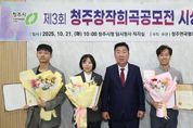(포탈뉴스통신) 청주시가 후원하고 (사)청주연극협회가 주최‧주관한 제3회 청주 창작희곡 공모전 시상식이 21일 임시청사 직지실에서 개최됐다. 이번 공모전은 한국 연극계의 새로운 목소리를 발굴하고 창작희곡의 활성화를 도모하기 위해 마련됐으며, 전국에서 다양한 소재와 형식을 담은 77편의 작품이 출품되는 등 뜨거운 관심을 모았다. 심사는 연출가, 극작가 등 연극 전문인으로 구성된 심사위원단이 맡아 작품의 완성도, 독창성, 실연성의 3개 항목에 대한 심사를 진행해 최종 3개의 작품을 선정했다. 최종 선정된 작품은 독창성이 높고 무대화의 가능성이 높다고 평가된 작품으로 대상(상금 1,500만원)은 이홍이 작가의 ‘모스크바의 바다’, 최우수상(상금 1,000만원)은 노동훈 작가의 ‘고민수의 변수 통제 시뮬레이션’, 우수상(상금 500만원)은 서준교 작가의 ‘다이치’에 영광이 돌아갔다. 수상작들은 저작권 계약을 맺고 청주 극단에 공연 제작 우선권을 지원하게 된다. 상을 수여한 이범석 청주시장은 “창작희곡은 한국 연극의 뿌리를 지탱하는 중요한 장르로, 이번 공모전을 통해 참신한 극작가들이 발굴된 점