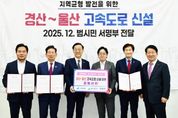 (포탈뉴스통신) 경산시는 17일 국회 본관 소회의실에서 조지연·권영진 국회의원, 조현일 경산시장, 김학홍 경북도 행정부지사, 안효대 울산시 경제부시장 등 관계 지자체 및 국회 관계자 20여 명이 참석한 가운데 경산~울산 고속도로 신설의 국가 계획 반영을 건의하며, 범시민 서명부와 3개 지자체장의 공동선언문을 국토교통부에 공식 전달했다. 이날 경산시는 경산~울산 고속도로 신설을 촉구하는 범시민 서명부(160,123명)와 함께, 경북도·울산시·경산시가 공동으로 뜻을 모은 선언문을 전달하며, 김윤덕 국토부 장관에게 사업의 필요성과 제3차 고속도로 건설계획 반영을 요청했다. 이와 함께 권영진 국회의원도 함께 참석하여 뜻을 모았다. 경산~울산 고속도로는 영남 내륙과 동남권 산업권을 직접 연결하는 핵심 교통축으로, 이동 거리 단축과 물류 효율성 제고를 통해 지역 간 산업 연계 강화와 초광역 경제권 형성에 기여할 것으로 기대되고 있다. 특히 자동차부품 산업이 집적된 경산과 완성차 산업의 중심지인 울산을 직결함으로써, 기존 우회·경유 구조로 인한 물류 비효율을 개선하는 기반이 될 수 있다는 평가다. 이 과정에서