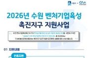 (포탈뉴스통신) 수원특례시가 수원 벤처기업육성촉진지구 내 중소·벤처기업을 대상으로 인증과 제품 개발을 지원하는 ‘2026년 수원 벤처기업육성촉진지구 활성화사업’에 참여할 기업을 모집한다. 수원 벤처기업육성촉진지구 활성화사업은 기업의 인증·제품 개발 등을 지원해 중소·벤처기업의 경쟁력을 강화하고, 투자·유치 환경을 조성하는 사업이다. 모집 공고일(2월 25일) 기준 수원 벤처기업육성촉진지구 내 입주기업이 신청할 수 있다. ▲수원델타플렉스 1~3단지 공장등록기업 또는 사업 단지 입주계약확인 기업 ▲서울대학교 농생명과학 창업지원센터 입주기업 ▲성균관대학교 자연과학캠퍼스 창업보육센터·연구소 입주기업 등이 대상이다. ‘인증 지원’, ‘제품 개발 지원’ 등 2개 분야가 있다. 인증 지원은 ▲벤처기업 확인 ▲시스템 인증 ▲이에스지(ESG) 평가 인증을, 제품 개발 지원은 ‘시제품 제작’, ‘디자인 개발’을 지원한다. 인증 지원과 제품개발 지원을 동시에 신청할 수 없다. ‘벤처기업 확인’은 벤처확인기관 납부 평가료·수수료(최대 30만 원)와 벤처기업 확인 현판 제작비(20만 원 상당)를 지원한다.
