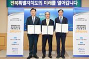 (포탈뉴스통신) 전북특별자치도가 국내 금융중심지 선두로 도약하는 서막이 열렸다. 도는 23일 도청에서 김관영 전북자치도지사, 김성주 국민연금공단 이사장, 양종희 KB금융그룹 회장이 참석한 가운데 ‘자산운용 특화 금융생태계 조성 및 지역경제 활성화’를 위한 3자 업무협약을 체결했다. 이날 협약은 지난 1월 KB금융그룹이 발표한 전북혁신도시 내 ‘KB금융타운’ 조성 계획의 실질적 후속 조치로, 민·관·공이 원팀을 이뤄 전북을 글로벌 자산운용 거점으로 키우고 지역 경제의 자생적 성장 동력을 확보하기 위해 마련됐다. ■금융거점 조성부터 기후테크 펀드까지…전방위 협력 전북자치도·국민연금공단·KB금융그룹은 전북혁신도시 내 ‘KB금융타운’ 조성을 위해 역할을 나눠 맡는다. 도는 행정적 지원을 전담하고, 국민연금공단은 민간 금융기관과의 자산운용 협력체계를 강화해 전북 특색의 금융 생태계 구축을 위한 마중물 역할을 담당한다. KB금융그룹은 KB증권·KB자산운용 등 핵심 계열사 기능을 집결시키며, 지난달 발표한 250명 규모에서 늘어난 약 380명이 전북혁신도시에 근무할 예정이다. 여기에 전북혁신도시 외 전주 지역 근무 인원까지