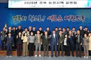 (포탈뉴스통신) 경상북도는 2월 11일 도청 화백당에서 시‧군 농정 부서장과 유관 기관 관계자 등 150여 명이 참석한 가운데 2026년 농정시책 설명회를 개최했다. 이번 회의에서는 2026년 경북 농정방향과 5대 중점 추진전략을 공유하고, 경북형 공동영농의 시군 연계 강화 방안과 국비 공모사업 대응 전략 등 주요 현안을 심도 있게 논의했으며, 시‧군의 다양한 의견을 청취하는 시간도 가졌다. 2026년 경북농정은‘농업소득 두 배로! 경북 농업대전환 확산 가속’을 목표로 ▲든든한 농업, 새로운 기회가 되는 농촌으로 대전환 ▲K-푸드 선도, 글로벌 농식품산업 구현 ▲농업생산시스템 혁신, 미래 신성장 동력 창출 ▲가축개량 및 스마트 기술로 미래 선진 축산 구현 ▲차단방역으로 건강한 가축, 안전한 축산물 공급 등 5대 중점 전략을 중심으로 추진해 나갈 계획이다. 특히, 도는 농식품부 국정과제로 채택된 경북형 공동영농의 도약을 위해 올해부터는‘선 교육 후 지원’체계를 본격 도입하고, 단계별 지원체계를 정립해 나가기로 했다. 마을 및 들녘 단위의 공동체 중심으로 역량 강화 교육을 추진할 방침이다.