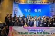(포탈뉴스통신) 전라남도는 13일 경남 거제 하나로컨벤션에서 열린 경남호남향우연합회 제8대 회장 취임식에 참석해 고향사랑 실천 캠페인을 펼치며 향우회와의 교류와 협력을 강화했다. 경남호남향우회연합회는 2013년 설립돼 현재 약 30만 명의 향우가 활동하고 있다. 지역교류와 고향 방문으로 지역사회와의 유대를 강화하는 다양한 활동을 활발히 이어가고 있다. 행사에는 이주연 신임회장과 이병철 이임회장을 비롯해 400여 명의 향우가 참석했다. 신임 회장을 축하하기 위해 최순모 전국호남향우회총연합회장, 오명석 인천호남향우회장, 이은석 부산호남향우회장, 김주찬 대구·경북호남향우회장, 이성구 울산호남향우회장 등 전국 각지의 광역호남향우회장이 참석해 자리를 빛냈다. 전남도는 이 자리에서 ‘전남 사랑애 서포터즈’를 중심으로 한 도정 주요 시책, 향우 참여 확대 방안 등을 설명해 향우들과의 유대를 강화했고, 특히 연말을 맞아 고향사랑기부에 적극 동참해줄 것을 당부했다. 이주연 신임 회장은 “향우회의 발전과 화합을 위해 전임 회장께서 보여준 헌신에 깊이 감사드린다”며 “그 소중한 바통을 이어받아 앞으로도 지역 향우와 뜻