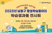 (포탈뉴스통신) 인천시 남동구 평생학습관은 구민의 자발적 학습문화를 지원하는 ‘2025년 자발적학습모임 지원사업’의 일환으로, 10월 22~29일까지 남동구평생학습관에서 학습동아리 성과 전시회를 개최한다고 20일 전했다. 전시회는 학습동아리들이 그간 갈고닦은 결과물을 한자리에 모아 선보이는 자리로, 단순한 취미활동을 넘어 배움과 나눔, 성장을 함께하는 학습공동체의 의미를 구민과 공유하는 의미가 있다. 남동구는 학습동아리의 활동을 위해 ‘강사비 등’을 지원했으며, 참여팀들은 이를 바탕으로 창의적인 성과물을 선보일 예정이다. 전시에서는 ▲고래친구들 '느린학습자 보호자들의 성장 이야기' ▲낭만기타 '기타 연주 영상' ▲동화좋아 '직접 만든 그림책 놀이 교구' ▲리스타트 '우쿨렐레 연주 영상' ▲시니어팝업북클럽 '업사이클링 팝업북' ▲코딩씽씽 '3D프린터 출력과정과 출력물 그리고 3D펜 놀이북' ▲함께 살피고 배우는 온기 '통기타 연주 영상'과 함께, 아주 활발하게 활동하고 있는 5개의 학습동아리 작품도 추가로 소개돼 총 12개 동아리의 다채로운 성과물이 전시된다. 자발적학습모임 지원사업은 우수한 학습동아