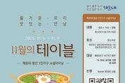 (포탈뉴스통신) 해운대구는 11월 6~9일 청년 1인 가구를 위한 소셜다이닝 ‘11월의 테이블’을 연다. 지난 6월에 이은 올해 두 번째 소셜다이닝으로 나흘 동안 4회에 걸쳐 진행한다. 6일과 7일은 오후 6시, 8일과 9일에는 오후 3시에 시작하며, 회차별 15명씩 모두 60명이 참여한다. 참여자들은 저염‧저당 요리를 주제로 전문가와 함께 요리하는 시간을 갖는다. 주변에서 쉽게 구할 수 있는 재료를 활용해 청년 1인 가구의 라이프 스타일을 고려한 건강한 요리법을 배운다. 요리 후에는 직접 만든 요리를 먹으면서 대화를 나누는 시간이 이어진다. 나만의 간단 요리 레시피, 잊을 수 없는 한 끼, 나만 알기 아쉬운 해운대 맛집 등을 주제로 소통할 예정이다. 참여를 원하는 청년은 10월 27일부터 31일까지 해운대구 청년 온라인플랫폼 ‘해청이랑에서 신청하면 된다. 구 관계자는 “청년들이 요리법을 배우고, 식사를 하며 관심사를 공유하는 이번 행사에 많은 참여를 바란다”라고 말했다. [뉴스출처 : 부산시해운대구]
