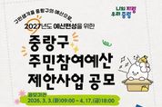 (포탈뉴스통신) 중랑구가 2027년도 예산에 반영할 주민참여예산 사업을 발굴하기 위해 오는 3월 3일부터 4월 17일까지 총 11억 원 규모의 주민참여예산 제안사업 공모를 실시한다. 주민참여예산제도는 주민이 지역에 필요한 사업을 직접 제안하고 예산 편성 과정에 참여하는 제도로, 예산 운영의 투명성을 높이고 주민 체감도가 높은 사업을 추진하기 위해 마련됐다. 중랑구민은 물론 중랑구 소재 직장인과 학생 등 누구나 참여할 수 있으며, 공모기간 내 중랑구청 누리집을 통해 온라인 신청하거나 담당자 이메일 제출, 마을협치과 방문 및 우편 접수도 가능하다. 접수된 제안은 관련 부서 검토와 주민참여예산위원회 심의를 거쳐 8월 중 주민투표로 최종 선정된다. 선정된 사업은 구의회 승인을 거쳐 2027년 예산안에 반영하여 확정·시행될 예정이다. 구는 지난해 ▲주택가 급경사지 도로열선 설치 ▲귀갓길 안심 프로젝트 등 생활밀착형 사업을 추진해 주민들의 높은 호응을 얻었다. 올해 역시 ▲봉화산 동행길 안전 표지판 설치 ▲은행나무 가로수길 보행환경 개선 ▲건강취약 어르신 동네 모임 운영 등 다양한 주민 제안사업을 추진하고 있