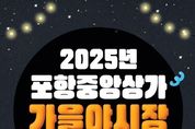(포탈뉴스통신) 포항시는 오는 10월 31일부터 11월 2일까지 3일간 중앙상가 거리 일원에서 ‘2025 포항 중앙상가 가을 야시장’을 개최한다. 지난 여름 7주간 운영된 ‘2025 중앙상가 여름 야시장’의 시민들의 뜨거운 호응 속 지속적 요청에 힘입어, 중앙상가 일원 도시재생사업과 연계를 위한 가을맞이 특별 야시장 운영이 결정됐다. 이번 가을 야시장은 오후 5시부터 밤 10시까지 푸드트럭·먹거리 부스·플리마켓·체험 공간 등 20여 개 부스가 운영된다. 특히 매일 오후 7시부터 2시간 동안 지역뮤지션 버스킹 공연이 펼쳐져 도심 속 가을 축제 분위기를 한껏 끌어올리며 가을밤 정취를 더할 예정이다. 중앙상가 일원에서는 한동대학교 주관의 ‘다시 육거리 프로젝트(10.27.~11.9.)’가 동시에 진행돼 빈 점포를 전시·체험 공간으로 재활용하는 도시문화 혁신 모델이 선보인다. 두 행사는 시너지 효과를 내며 도심 상권에 활기를 불어넣고 청년, 상인이 함께 참여할 수 있는 문화와 상업이 어우러진 복합 도심형 축제의 장으로 주목받고 있다. 포항시 관계자는 “이번 가을 야시장은 APE