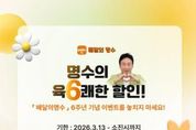 (포탈뉴스통신) 군산시 공공배달앱 ‘배달의명수’가 출시 6주년을 맞아 다양한 소비자 혜택 이벤트와 홍보 활동을 추진하며 지역경제 활성화에 박차를 가하고 있다. 군산시는 3월 13일부터 예산 소진 시까지 ‘배달의명수’ 6주년 기념 ‘육(6)쾌한 할인’ 이벤트를 진행한다고 밝혔다. 이번 이벤트는 배달의명수 이용 소비자를 대상으로 진행되며, 이벤트 기간 동안 2만 원 이상 주문 시 6,000원을 즉시 할인받을 수 있다. 할인은 하루 1회 한정으로 제공되며 선결제 주문에 한해 참여 가능하다. 이와 함께 군산 출신 방송인 박명수가 군산시 공공배달앱 ‘배달의명수’ 홍보모델로 위촉되며 배달의명수 알리기에 힘을 보태고 있다. 시는 박명수 특유의 유쾌하고 친근한 이미지를 활용한 다양한 홍보 콘텐츠를 통해 시민 관심도를 높이고 공공배달앱 인지도를 확대해 이용 활성화와 가맹점 매출 증대에도 긍정적인 효과가 있을 것으로 기대하고 있다. 또한 배달의명수는 소비자 혜택 강화를 위해 ‘이번 주 할인’ 사업도 지속적으로 추진하고 있다. 해당 사업은 참여 가맹점을 대상으로 무료 배달 서비스를