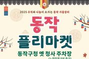 (포탈뉴스통신) 동작구가 오는 11월 1일 오전 10시부터 오후 5시까지 구청 옛 청사 주차장(노량진역 5번 출구)에서 ‘2025 추억과 나눔이 오가는 동작 가을장터’를 연다고 밝혔다. 이번 행사는 주민과 단체가 직접 참여하는 ‘플리마켓’과 김장철 맞이 ‘직거래장터’를 한자리에서 즐길 수 있도록 기획됐다. 먼저 플리마켓은 약 30개 부스에서 의류, 도서, 소품 등 다양한 중고 물품을 판매하며 일상 속 자원순환 문화를 실천하는 장으로 마련된다. 직거래장터에서는 자매결연 도시 등에서 들여온 김장철 필수 품목(배추, 무, 고춧가루 등)과 지역특산물이 시중가보다 최대 33% 저렴하게 판매된다. ▲축산물 타임세일(11시·13시·15시) ▲선착순 증정품 지급 ▲당일 배달서비스(박스 단위, 관내 한정) ▲칼갈이 부스(인당 2개, 개당 100원) 등 다양한 이벤트도 진행된다. 아울러 주민들이 즐길 수 있는 ‘체험 프로그램(한지 무드등·편백 향낭 만들기 등)’과 구청 직원이 참여하는 ‘사랑 나눔 바자회’도 운영된다. 바자회 수익금은 동작복지재단 등에 후원금으로 활용될 예정이다. 이와 함께 군고구마 등을