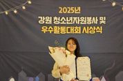 (포탈뉴스통신) 영월군청소년문화의집봉사동아리 소속 이가윤(무릉초6)이 지난 14일 ‘2025년 강원 청소년자원봉사 및 우수활동대회’ 시상식에서 한국청소년활동진흥원 이사장상을 받았다. 올해 문화의집 봉사동아리 ‘봉달’은 지역사회 환경문제 개선을 위해 주민들이 탄소중립과 올바른 쓰레기 배출을 실천할 수 있도록 돕는 청소년 자기주도형 봉사활동 ‘세이브어스’를 진행했다. 이번 활동은 봉사활동의 기획과 운영까지 모든 과정에 청소년이 주도적으로 진행했으며 이가윤 청소년은 이 과정에 자신의 변화점을 참여수기로 작성하여 우수상을 받게 됐다. 이가윤(무릉초6)은 “이번 활동은 제 기억에 평생 남을 듯한 뜻깊은 활동이었고, 이렇게 상까지 받게 되어 기쁘다”라며 “올해의 활동은 끝났지만 앞으로도 지속적으로 우리동네에 관심을 두고 환경을 지키는 활동들을 이어 나가겠다”라고 말했다. [뉴스출처 : 강원도 영월군]