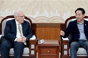 (포탈뉴스통신) 유정복 인천시장은 12월 3일 오후 인천시청 접견실에서 세계 최고 수준의 의과·바이오 연구 중심 대학인 존스홉킨스대의 조나단 슈넥(Jonathan schneck) 의과대학 교수(왼쪽) 일행을 접견했다. 이번 접견은 12월 4일 인천에서 ‘존스홉킨스대 글로벌 바이오 혁신 서밋’을 개최하게 됨에 따라, 이번 서밋을 주관한 존스홉킨스대학의 교수진과 다양한 협력 방안을 논의하기 위해 마련됐다. 유정복 인천광역시장(가운데), 조나단 슈넥 교수(왼쪽에서 세 번째), 김덕호 존스홉킨스 글로벌 생명공학 혁신 센터장(왼쪽에서 두 번째)는 ▲향후 인천을 거점으로 한 한-미 공동연구 및 바이오 혁신기술 산업화 방안 ▲존스홉킨스대 연구센터(R·D센터) 유치 등에 대한 논의를 이어갈 방침이다. 조나단 슈넥 존스홉킨스대 교수는 “송도를 중심으로 한·미 바이오 협력이 새로운 글로벌 혁신 모델로 정착하길 기대한다”라고 말했다. 유정복 인천시장은 “인천시는 세계적 연구기관과 글로벌 기업, 산업 협회와의 협력을 통해 연구개발부터 산업화, 글로벌 진출까지 연결되는 바이오 산업 생태계 조성을 적극 지원하겠다”라고 밝혔
