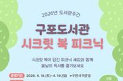 (포탈뉴스통신) 부산광역시립구포도서관은 도서관 주간을 맞아 오는 18일과 19일 이틀간 도서관 앞 온빛광장에서 도서관 이용자를 대상으로 이색 대출 서비스 ‘시크릿 북 피크닉’을 운영한다. 이번 행사는 이용자들에게 색다른 독서 경험을 제공하고 도서관 이용에 대한 흥미를 높여 책 읽는 문화를 확산하기 위해 마련했다. 참여자는 도서관 2층 문적원2에서 ‘시크릿 북 피크닉 세트’를 대여한 후 온빛광장에서 자유롭게 독서를 즐길 수 있다. 세트는 피크닉 바구니, 돗자리, 접이식 테이블 및 의자, 필사 체험용 키트와 시크릿 북 2권으로 구성되어 별도의 준비 없이도 야외 독서를 편리하게 체험할 수 있도록 했다. 특히 세트에 포함된 도서는 제목과 저자 대신 10가지 키워드만 제시하여, 이용자가 자신의 취향에 맞는 키워드를 선택해 예상치 못한 책을 만나는 즐거움과 새로운 독서 경험을 제공한다. 행사 운영 시간은 오전 10시부터 오후 4시까지이며, 하루 10팀을 대상으로 운영한다. 자세한 사항은 구포도서관 문적원2로 문의하면 된다. 신미향 구포도서관장은 도서관 앞 온빛광장에서 펼