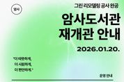(포탈뉴스통신) 강동구 강동구립암사도서관이 약 6개월간의 ‘친환경 그린 리모델링’ 공사를 마치고 오는 1월 20일 새롭게 문을 연다고 19일 밝혔다. 2010년 개관한 암사도서관은 지난 2023년 국토교통부 주관 ‘공공건축물 그린리모델링’ 공모 사업에 선정됐다. 이에 구는 2025년 7월부터 12월까지 노후화된 건축물의 에너지 성능을 개선하고 기후 변화에 대응하기 위한 전면적인 환경 정비 공사를 실시했다. 이번 리모델링의 핵심은 친환경 에너지 효율화와 이용자 편의 증대에 초점을 맞췄다. 우선 건물의 내·외벽 단열을 대폭 보강하고 고성능 창호와 최신 냉난방 시스템을 도입하여 에너지 소비를 획기적으로 줄였다. 또한, 화장실에 순간온수기를 설치하는 등 구민들이 체감할 수 있는 세심한 부분까지 설비를 개선했다. 또한, 내부 공간을 이용자 중심으로 재배치하여 쾌적한 독서 환경을 조성했다. 강동구는 이를 통해 탄소 중립 사회로 나아가는 ESG 경영을 실천함과 동시에, 지역 주민들에게 한층 수준 높은 독서 문화 공간을 제공할 수 있게 됐다. 재개관을 기념하는 풍성한 프로그램도 운영된다. 1월 20일부터 그린 리