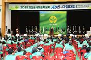 (포탈뉴스통신) 충북 괴산군 새마을회(회장 김종성)는 20일 괴산문화체육센터에서 ‘2025년 괴산군 새마을지도자 한마음다짐대회’를 개최했다고 밝혔다. 이번 행사는 새마을운동의 활성화와 회원 간 화합을 도모하기 위해 마련된 자리로, 송인헌 괴산군수와 김낙영 군의회 의장을 비롯해 괴산군 새마을회원 및 대구시 북구 새마을회 회원 등 400여 명이 참석했다. 1부 행사는 ▲대회선언 ▲국민의례 ▲내빈소개 ▲새마을운동 및 지역사회 발전 유공자 표창 ▲효도장학생 장학증서 수여 순으로 진행됐다. 또한, 괴산군 새마을회는 괴산군민장학회에 장학기금 350만 원을 전달했다. 2부 행사에서는 읍·면별 노래자랑이 열려 회원들이 함께 어우러지며 화합과 단결을 다지는 시간을 가졌다. 송인헌 군수는 “지역 곳곳에서 묵묵히 봉사하며 공동체 발전을 위해 헌신해온 새마을회원 여러분께 깊이 감사드린다”며 “이번 대회를 계기로 더욱 발전하는 새마을회가 되길 기대한다”고 말했다. 한편, 괴산군 새마을회는 환경정화활동, 3R 재활용자원 모으기, 꽃길 조성, 생산적 일손봉사, 독거노인 돌봄, 농특산물 직거래, 명절맞