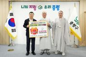 (포탈뉴스통신) 중랑구가 지난 6 일 오후 구청장실에서 사단법인 나누며하나되기와 함께 ‘ 취약계층 행복나눔 물품 전달식 ’ 을 진행했다 . 이번 전달식에서 대한불교천태종 산하 사단법인 나누며하나되기는 겨울철 추위와 경제적 어려움을 겪고 있는 지역 내 취약계층과 어린이들을 위해 5,000만 원 상당의 건강·생활·방역용품을 기탁했다. 기탁된 성품은 도움이 필요한 가정에 순차적으로 전달될 예정이다. 사단법인 나누며하나되기는 2003년 창립 이후 국내외에서 다양한 구호 활동을 이어오고 있으며, 중랑구와는 이번이 세 번째 나눔이다. 현재까지 중랑구에 전달한 성품의 누적 가액은 약 1억 원에 이른다. 류경기 중랑구청장은 “지역사회를 위해 꾸준히 따뜻한 나눔을 실천해 주셔서 감사드린다”라며 “기탁받은 성품은 도움이 필요한 이웃들에게 정성껏 전달해 모두가 온기를 느낄 수 있는 겨울이 되도록 하겠다”라고 말했다. [뉴스출처 : 서울특별시 중랑구]