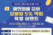 (포탈뉴스통신) 제천시가 오는 10월 29일부터 11월 9일까지 12일간 진행되는 ‘코리아 그랜드 페스티벌’에 맞춰 제천화폐 모아 모바일 결제 시 5%를 적립해주는 특별 이벤트를 실시한다고 밝혔다. ‘코리아 그랜드 페스티벌’은 ‘희망이 되는 소비, 함께 성장하는 경제’를 슬로건으로 전국에서 추진되는 소비 진작 캠페인으로, 대규모 할인 행사와 연계해 지역경제에 활력을 불어넣는 행사다. 별도의 신청 없이 행사 기간에 제천화폐 모아 QR 또는 카드 결제 시 결제금액의 5%를 적립 받을 수 있다. 상품권 월 충전 한도액은 100만 원, 보유 한도는 150만 원으로 유지된다. 이번 모바일 5% 적립 행사는 총 예산 4억원 규모로 ‘코리아 그랜드 페스티벌’ 기간 중에만 적용되며, 예산이 소진될 경우 조기 종료될 수 있다. 시 관계자는 "코리아 그랜드 페스티벌과 연계한 이번 특별 할인이 지역 상권 매출 회복과 소비심리 진작에 도움이 되길 바란다"며 "시민 여러분의 많은 관심과 참여를 바란다"고 말했다. 한편, 지류 상품권은 이번 행사와는 관계없이 기존대로 운영되며, 11월 3일 오전 9
