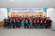(포탈뉴스통신) 예천군은 30일, 농업인대학생 40여 명이 참석한 가운데 ‘예천군농업인대학 사과 특화과정 수료식’을 개최했다. 이 자리에는 김학동 군수와 강영구 군의회 의장, 도기욱 경북도의원 등 주요 인사들도 참여해 수료자들을 축하했다. 이번 교육은 사과 밀식 및 다축형 재배기술 향상을 희망하는 농가를 대상으로 지난 4월 2일부터 9월 30일까지 ▲수형구성 방법 및 토양관리, ▲기후변화에 따른 재배적 대응방안 등 총 24회(104시간) 교육과정으로 운영됐다. 특히 최근 도입되기 시작한 다축 재배 개원요령 및 초기관리, 정지전정 이론 등 국내 사과재배 유명 강사진의 알찬 강의와 선진지 견학 및 교육생 농장 현장 컨설팅으로 높은 관심과 만족도를 보였다. 교육생 40여명 가운데 35명이 수료했으며, 교육기간 중 교육생 자치활동 공로를 인정받아 임각준(감천면) 교육생이 농촌진흥청장상을 수상했다. 김학동 군수는 “교육생들의 농업인대학 수료를 진심으로 축하한다”며, “앞으로 예천 사과를 이끌어갈 주역이라는 사명감으로 미래형 명품사과 과원 조성을 이끌어 줄 것을 당부드리며, 예천군에서도 지속적인 기술지원과