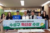 (포탈뉴스통신) 대구 수성구는 지난 18일 안동 국제컨벤션센터에서 열린 제21회 대한민국건강도시협의회 정기총회에서 제10회 대한민국 건강도시상 ‘혁신상’을 수상했다. 이번 수상은 각 부서의 주요 정책사업을 '건강도시 수성' 추진계획과 연계해 건강도시 개념을 적용하고, 지속가능한 개선·관리 체계를 마련하는 등 범정부적·사회적 접근 방식을 활용한 점이 높은 평가를 받았다. 특히 ▲두꺼비 집단 서식지 생태환경 보전을 위한 '망월지 생태환경 보존사업' ▲지역의 생태경관 자원을 활용하여 사색과 힐링으로 내면의 행복을 찾는 '생각을 담는 길 조성' ▲건강친화적 생활환경 조성을 위한 체육시설 및 '맨발걷기 산책로 조성' ▲올해 19회째를 맞이한 민관학 참여 전국 유일 '수성건강 축제' 등 ‘사람· 첨단기술·생태를 아우르는 차별화된 유일한 건강도시 수성’을 위한 수성구만의 특화 사업들이 좋은 반응을 얻었다. 수성구는 대구·경북 유일의 WHO 서태평양건강도시연맹 정회원 가입 도시이자 대한민국건강도시협의회 회원도시로, 지난 2018년 제3회 건강도시상 수상에 이어 이번에 다시 ‘혁신상’을 수상함으로써 건강도시 정책사업의 우수성을