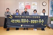 (포탈뉴스통신) 대구 서구청은 대구시에서 실시한 2025년 민원행정 시민 만족도 조사에서 최우수, 종합평가에서 우수 기관에 선정됐다고 밝혔다. 대구시는 민원행정서비스 품질 향상을 위해 매년 ‘민원행정 시민 만족도 조사’를 실시하고 있다. 시민 만족도 조사는 지난해 10월부터 올해 9월까지 민원 서비스를 이용한 시민을 대상으로 민원 서비스 과정, 서비스 결과, 민원 응대 태도 및 전반적인 만족도에 대해 전화 설문의 형태로 이루어졌으며, 서구는 9개 구·군 중에서 가장 높은 종합만족도 96.8점을 얻어 ‘최우수’기관으로 선정되는 쾌거를 이루었다. 또한 서구는 대구시에서 매년 실시하고 있는 민원행정 종합평가에서도 3년 연속‘우수’기관으로 선정되는 영예를 안았다. 대구시의 민원행정 종합평가는 9개 구·군의 민원제도 운영 분야 14개 지표와 민원처리 현황 분야 8개 지표 등 총 22개 지표에 걸쳐 이루어진다. 서구는 안전한 근무환경 조성, 스마트 민원서비스 운영 지원, 고충민원 처리·관리 및 해결 노력 등 전반적인 분야에서 높은 평가를 받았다. 특히, 2일 이상 법정민원 처리 기간