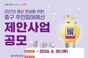 (포탈뉴스통신) 인천시 중구는 ‘2027년도 예산편성을 위한 주민참여예산 제안사업 공모’를 추진한다고 23일 밝혔다. ‘주민참여예산제’는 예산 운영의 투명성·효율성을 높이기 위해 주민이 지역에 필요한 사업의 제안부터 심사, 선정 등 예산편성의 전 과정에 직접 참여하는 제도다. 이번 공모는 중구에 주소를 둔 주민, 관내 소재 기관 근무자, 관내에 영업소 본점·지점을 둔 사업체의 대표자·직원이면 참여가 가능하다. 공모 분야는 생활 편익 증진을 위한 사업, 주민 복리증진과 불편 해소를 위한 사업 등이다. 참여 희망자는 오는 6월 30일까지 중구 홈페이지 주민제안사업 접수 전용 페이지로 사업을 제안하거나, 중구 총무과 주민자치팀으로 방문·우편·팩스를 통해 제안서를 제출하면 된다. 또한, 중구 주민참여예산위원이나 동 지역위원회위원을 통해서도 사업 제안이 가능하다. 제안된 사업들은 실무부서의 사업 적정성 검토 후, 주민참여예산위원회 심사, 주민 총회 등의 절차를 거쳐 오는 2027년도 예산안에 반영될 예정이다. 중구 관계자는 “주민참여예산은 구민 중심의 풀뿌리 민주주의 실