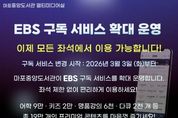 (포탈뉴스통신) 마포구 구립도서관인 마포중앙도서관은 이용자에게 편리하고 폭넓은 영상자료 서비스를 선보이기 위해 2026년 3월부터 ‘EBS Play+ 구독 서비스’를 확대 운영한다. EBS Play+는 어학, 키즈, 다큐멘터리, 명품 강의 등 다양한 교육·문화 콘텐츠를 담은 온라인 영상 구독 서비스다. 그동안 EBS 구독 서비스는 마포중앙도서관 멀티미디어실 내 5개 PC 좌석에서만 이용할 수 있어, 해당 좌석에 이용자가 있으면 대기해야 하는 불편함이 있었다. 이에 마포중앙도서관은 이러한 불편을 해소하고 더 많은 구민이 콘텐츠를 활용할 수 있도록 멀티미디어실의 모든 PC 좌석에서 EBS 구독 서비스를 이용할 수 있게 했다. 또한 개인 모바일 기기나 노트북 등을 이용하여 도서관 내 와이파이로 EBS Play 앱 또는 EBS 누리집에 접속하면 콘텐츠를 시청할 수 있도록 이용 환경을 넓혔다. 이로써 마포중앙도서관 이용자는 누구나 어학 9만여 개, 키즈 2만여 개, 명품 강의 6천여 개, 다큐멘터리 2천여 개 등 총 19만여 개의 EBS 프리미엄 콘텐츠를 무료로 이용할 수 있게 됐다.
