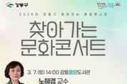 (포탈뉴스통신) 서울 강동구는 오는 3월 7일 오후 2시, 강동중앙도서관 다목적홀(양재대로84길 63)에서 '2026년 찾아가는 문화콘서트' 1회차를 개최한다고 6일 밝혔다. '2026년 찾아가는 문화콘서트' 1회차는 강동구립 국악관현악 팀 공연과 역사 강연이 어우러진 복합 문화프로그램으로, 지역주민이 일상 가까이에서 수준 높은 인문학과 문화예술을 함께 접할 수 있도록 마련됐다. 이날 강연은 노혜경 교수가 ‘영조의 르네상스 리더십’을 주제로 진행한다. 영조·정조 시대를 ‘조선의 르네상스’로 조명하고 서양 르네상스와의 공통점과 차이점을 비교하며, 변화와 개혁의 시대를 이끈 리더십의 의미를 살펴볼 예정이다. 이를 통해 오늘날 사회에서 요구되는 리더의 역할에 대해 생각해 보는 시간을 갖는다. 강연을 맡은 노혜경 교수는 현재 호서대학교 혁신융합학부 교수로, ‘벌거벗은 한국사’, ‘KBS 역사스페셜’ 등 다수의 방송에 출연해 대중과 소통해 왔다. 또한 『더 리더: 영조 그리고 정조』, 『조선 후기 중앙관청의 숨은 실세, 경아전』 등 여러 저서를 집필했다. 참여 대상은 지역주민 250여 명이며, 참가 신청은