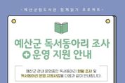 (포탈뉴스통신) 예산군 공공도서관은 지역 내 독서동아리 활동을 체계적으로 지원하고 독서공동체 기반을 넓히기 위해 ‘2026 독서동아리 운영 지원사업’을 추진한다. 군은 오는 4월 1일부터 30일까지 관내 독서동아리를 대상으로 현황조사와 지원사업 신청을 동시에 접수하며, 이를 통해 지역 내 동아리 활동 실태를 파악할 계획이다. 원활한 실태 파악을 위해 현황조사에 참여하는 독서동아리에는 2026년 동안 예산군립도서관 공간을 3회 무료로 대여할 수 있는 혜택을 제공한다. 지원사업은 관내에서 활동 중인 성인 5인 이상으로 구성된 독서동아리 가운데 3개 동아리를 선정해 5월부터 11월까지 운영하며, 선정된 동아리에는 군립도서관 다목적실·문화강좌실 등 활동 공간 무료 대관을 비롯해 동아리 활동 도서 구입 지원, 독서 멘토링, 작가와의 만남, 문학기행 등 다양한 독서문화 프로그램을 지원한다. 현황조사 참여 및 지원사업 신청을 희망하는 독서동아리는 안내문 내 정보무늬(QR코드)를 통해 신청서를 제출하거나 군 공공도서관 누리집에 게시된 신청서를 작성해 전자우편으로 제출하면 된다. 군 관계자는 “이번 독