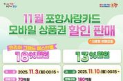 (포탈뉴스통신) 포항시는 코리아 그랜드 페스티벌 기간 지역 내 소비 붐업을 위해 내달 3일부터 카드형·모바일 포항사랑상품권을 70억 원 규모로 18% 할인판매를 시작한다. 코리아 그랜드 페스티벌은 이달 29일부터 내달 9일까지 12일간 개최되는 국가 차원의 통합 할인 행사로 제조·유통과 전통시장, 소상공인 업계가 참여한다. 이번 포항사랑카드 특별할인 판매는 기존 할인 혜택 13%에 5%를 추가해 총 18% 할인 혜택이 적용되며, 국비를 추가 확보해 코리아 그랜드 페스티벌과 연계로 진행하는 행사로 지역 내 소비 활성화에 기여할 것으로 기대하고 있다. 또한 시는 내달 3일부터 시작하는 포항사랑카드 70억 원 규모의 18% 할인판매에 이어 내달 10일부터는 180억 원 규모로 13% 할인판매 등 11월에 총 250억 원을 발행해 실질적인 소비 촉진으로 지역 상권 회복과 지역경제 선순환을 이어가겠다는 방침이다. 이번 포항사랑카드 18% 특별 할인판매의 개인 구매 한도는 10만 원이며, 보유 한도는 100만 원이다. 오는 11월 3일 0시 15분부터 모바일 앱(iM샵)에서 충전할 수 있으며, 104개 판매
