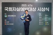 (포탈뉴스통신) 동두천시의회 권영기 의원이 지난 12월 11일, 국회에서 개최된 '2025 제7회 국회자살예방대상' 시상식에서 지방의회부문 국회자살예방포럼상을 수상했다. 이번 시상식은 국회자살예방포럼(공동대표의원 김교흥·정점식)과 안실련·생명보험사회공헌재단이 공동 주최했으며, 자살예방 관련 각 분야에서 헌신적으로 활동하는 대한민국 국민을 발굴, 포상하여 자살예방문화 확산에 기여하는 행사다. 권영기의원은 그동안 심리·정서적 위기 대응 체계 강화, 취약계층 정신건강 지원 확대, 생명존중 문화 조성 정책 제안, 청소년 보호 및 상담 지원 활동 강화 등 지역사회 자살 예방을 위한 다양한 노력을 지속해 왔다. 특히 지난 2월 5분발언을 통해‘관내 1인 가구에 대한 자살 방지·예방시책 마련’의 필요성을 적극 제기하고, 이를 통해 지역의 생명안전망 구축에 실질적인 성과를 거둔 점이 높은 평가를 받았다. 권의원은 “이번 수상은 동두천시의회와 지역사회가 함께 생명존중 가치를 지켜온 노력의 결실”이라며 “앞으로도 시민의 생명을 지키는 정책을 최우선 가치로 두고, 촘촘한 자살 예방 안전망을 구축하는 데 더욱 최선을 다