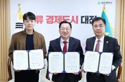 (포탈뉴스통신) 대전시는 28일 대전관광공사, 티엔알컴퍼니(주)와 함께 꿈돌이 누룽지 출시를 위한 공동브랜딩 업무협약을 체결했다. 이번 협약은 도시브랜드 IP(꿈씨패밀리)를 일상 식문화와 접목해 기념·선물형 간식을 개발·유통하고, 관광 소비 촉진과 지역 상권 활성화, 로컬기업과의 상생 생태계를 조성하기 위한 것이다. 이번에 출시되는 ‘꿈돌이 누룽지’는 일상 식품인 누룽지의 담백한 맛과 바삭한 식감을 살리면서, 꿈씨패밀리 세계관과 ‘꿈돌이’ 캐릭터를 담은 박스 패키지로 수집·선물 가치를 높인 것이 특징이다. 편식공장은 대전 동구에 기반을 둔 전통과자 전문 브랜드로, 쫀드기·꽈배기·곡물과자 등 ‘옛 간식’ 라인업을 현대적으로 재해석해 온 곳이다. 공식 채널을 통해 보리·쑥 등 우리 곡물 기반의 제품을 선보이며, 간결한 성분과 일상 간식에 어울리는 부담 없는 용량·구성으로 호응을 얻고 있다. 이장우 대전시장은 “누룽지처럼 누구나 즐기는 일상 먹거리에 지역 캐릭터와 로컬기업의 정성을 더해, 관광과 상권, 일자리를 함께 키우는 선순환이 만들어지길 기대한다”라며 “대전의 로컬브랜딩을 한 단계 끌어올리고, 시민