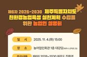 (포탈뉴스통신) 제주특별자치도가 향후 5년간 제주 친환경농업의 발전 방향을 담은 ‘제6차 친환경농업육성 실천계획(2026~2030)’ 수립을 위해 농업 현장의 목소리를 직접 듣는다. 제주도는 11월 4일 오후 3시 제주농어업인회관 대강당에서 친환경농업인과 관련 단체를 대상으로 실천계획 설명회를 개최한다. 친환경농업육성 실천계획은 '제주특별자치도 친환경농업 육성 조례' 제3조에 따라 5년마다 수립하는 법정계획으로, 제주도는 제5차 실천계획(2021~2025) 만료에 따라 제6차 실천계획을 수립하고 있다. 제주도는 올해 6월부터 원탁회의와 단체 간담회 등을 통해 현장의 다양한 목소리를 들어왔다. 이 과정에서 농업인들은 경영비 부담과 인력난 해소, 지리적 특성과 유통 구조 제약에 따른 친환경농산물 전용 물류센터 설립, 공공급식 확대, 친환경농업 분야 탄소중립 추진, 재해보험 신설, 인증제도 개선 등의 필요성을 제기했다. 제주도는 이러한 의견을 바탕으로 제도 개선이 필요한 사항은 농림축산식품부와 협의하고, 도 자체적으로 추진 가능한 과제는 제주 특성에 맞게 발굴해 실천계획 초안을 마련했다.