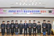 (포탈뉴스통신) 횡성군농업인대학은 21일 횡성군농업기술센터에서 ‘2025년 제15기 횡성군농업인대학 졸업식’을 진행했다. 제15기 농업인대학은 지난 2월부터 11월까지 횡성사과, 횡성한우, 미래농업인, 농업경영최고사관CEO 등 4개의 과정을 운영했으며, 총 93회 425시간의 교육을 자체강사와 각 분야의 전문가 등을 초빙해 실습 위주의 현장 중심 교육으로 추진했다. 횡성군농업인대학은 횡성농업의 특화 발전을 위한 품목별 장기 기술교육 기관으로 자리잡고 있으며, 올해는 총 90명의 수료생을 배출했다. 졸업식에는 김명기 군수와 횡성군의회 의장을 비롯해 내빈 및 90여 명의 수료생이 참석했으며, 농촌자원과장의 학사보고를 시작으로 공로상 및 개근상, 성적우수상, 졸업장 수여, 축사, 답사, 기념촬영 순으로 진행됐다. 김명기 횡성군수는 “졸업생들이 오늘의 성취를 바탕으로 더 큰 도전과 성장을 이어가길 바라며, 앞으로도 농업·농촌이 미래 경제성장 동력으로서 지속적으로 발전할 수 있도록 다양한 농업인교육을 추진하겠다”고 말했다. [뉴스출처 : 강원도 횡성군]