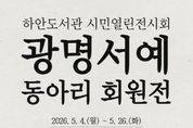 (포탈뉴스통신) 광명시 하안도서관은 오는 5월 4일부터 28일까지 1층 시민열린전시코너에서 서예 동아리 ‘광명서예’ 회원전을 연다. 하안도서관을 거점으로 활동하는 시니어 동아리 ‘광명서예’는 매주 수요일 정기 모임으로 기량을 닦아왔다. 올해 2회째인 이번 전시에서 그간 쌓은 창작 결실을 지역사회와 공유한다. 특히 ‘광명서예’는 문화체육관광부 주관 ‘2026년 도서관 문화예술 동아리 지원’ 공모 사업에 선정됐다. 확보한 국비 300만 원으로 전문 강사 특강을 진행해 작품 예술 완성도를 한층 높였다. 전시 작품은 ▲효과승사(유방선 시) ▲불역쾌재행(정약용 시) ▲춘우(허초희 시) ▲다반향초(김정희 시)를 비롯해 명심보감 구절과 자경문 등 총 28점이다. 모두 족자 형태로 구성했다. 관람은 공휴일과 도서관 정기 휴관일(매주 금요일)을 제외하고 평일과 주말 오전 9시부터 오후 9시까지 할 수 있다. 시민 누구나 무료로 감상한다. 최혜민 광명시장 권한대행(부시장)은 “동아리 회원 노력이 담긴 이번 전시는 시민이 주체가 되어 만드는 문화예술 활동 모범 사례”라며 “앞으로도 도서관을 중심으로 시민이