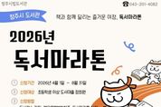(포탈뉴스통신) 청주시립도서관은 시민들의 독서 습관 형성과 책 읽는 문화 확산을 위해 ‘2026 독서마라톤’을 운영한다고 26일 밝혔다. ‘독서마라톤’은 책을 읽고 독서기록을 작성하면 이를 거리로 환산해 정해진 코스를 완주하는 참여형 독서 프로그램이다. 시민들이 일상에서 꾸준히 책을 읽고 독서의 성취감도 느낄 수 있도록 마련됐다. 신청 기간은 오는 4월 1일부터 8월 31일까지며, 대회 기간은 4월 1일부터 9월 30일까지 총 183일간이다. 참여 대상은 초등학생 이상 청주시립도서관 도서 대출 정회원이다. 도서관 누리집 ‘책으로 행복한 청주’ 내 독서마라톤 신청 페이지에서 접수하면 된다. 독서기록은 독서일지를 작성하면 인정되며, 기록 기준은 ‘1쪽당 2m’이다. 참가자는 개인 6개 코스와 단체 2개 코스 중 선택해 참여할 수 있다. 운영 코스는 △시립도서관 1.5km △철당간 3km △수암골 5km △상당산성 10km △정북동토성 21km △초정행궁 42.195km로 구성됐다. 완주자에게는 2027년 도서 대출 권수 2배 확대 혜택과 기념품이 제공되며, 우수 완주자에 대해서