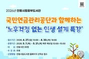 (포탈뉴스통신) 안동시립웅부도서관은 지역 주민들에게 건강하고 안정적인 노후생활을 지원하기 위해 부동산, 연금, 상속 등 행복한 노후 설계의 핵심 노하우를 전하는 ‘노후 걱정 없는 인생 설계’ 특강을 운영한다고 23일 밝혔다. 이번 특강은 국민연금공단과 연계해 진행되며, 공단 소속의 분야별 전문 강사가 강단에 서서 깊이 있고 실용적인 정보를 전달할 예정이다. 강연은 오는 5월 7일부터 21일까지 매주 목요일(오후 1시~3시) 총 3회에 걸쳐 웅부도서관 3강의실에서 진행된다. 세부 강의 내용은 ▲평생 월급 프로젝트 ▲똑똑한 증여, 현명한 상속 ▲부동산의 이해 순서로 마련돼 노후 준비의 3대 핵심 요소를 차례대로 짚어줄 예정이다. 수강 신청은 오는 4월 27일부터 4월 30일까지 4일간 진행된다. 안동시립도서관 누리집을 통해 선착순으로 접수한다. 안동시립도서관 관계자는 “이번 특강은 시민이 막연하게만 느꼈던 노후 준비를 체계적이고 종합적으로 계획할 수 있도록 돕기 위해 마련했다”며 “가까운 미래를 진지하게 고민하는 신중년 세대의 많은 관심과 참여를 기대한다”고 전했다. [뉴스출처 : 경상북도 안동시]