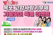 (포탈뉴스통신) 목포시는 깊어가는 가을을 맞아 10월 20일부터 ‘땡스기부~고향사랑기부제 가을맞이 특별 이벤트’를 진행한다고 밝혔다. 이번 이벤트는 10월 20일부터 고향사랑기부제를 통해 목포시에 10만 원 이상 기부하고 답례품을 신청한 기부자를 대상으로 하며, 별도의 응모 절차 없이 자동 참여된다. 선착순 500명에게 네이버페이 포인트 5,000원 쿠폰이 지급된다. 네이버페이 포인트 쿠폰은 간편하게 사용할 수 있는 디지털 경품으로, 기부자들이 실질적인 혜택을 체감할 수 있도록 마련됐다. 특히 10만 원 기부 시 ▲전액 세액공제 혜택 ▲3만 원 상당의 답례품 ▲5천 원 포인트 추가 혜택까지 받아 만족도가 더욱 높을 것으로 기대된다. 시는 이번 이벤트를 통해 고향사랑기부제 참여를 확대하고 건전한 기부문화 확산을 도모할 계획이다. 시 관계자는 “풍성한 가을을 맞아 목포에 따뜻한 마음을 보내주신 기부자분들께 감사드린다”며 “고향을 사랑하는 마음이 지역 발전으로 이어질 수 있도록 많은 관심과 참여를 부탁드린다”고 말했다. 이번 이벤트 관련 자세한 내용은 목포시 누리집과 SNS, 또는 전화를 통해 확인할 수