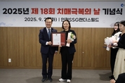 (포탈뉴스통신) 부평구 치매안심센터는 지난 23일 인천SSG랜더스필드(야구장)에서 열린 제18회 치매극복의 날 행사에서 ‛2025년 치매관리사업 유공 인천시장 단체표창’을 수상했다. 인천시는 매년 9월21일 치매 극복의 날을 기념해 인식 개선과 치매 예방의 중요성을 알리고자 관련 사업 및 정책에 기여한 기관·유공자에게 표창을 수여하고 있다. 센터는 ‘치매는 개인의 문제가 아닌 우리 모두가 함께 극복해야 할 문제’라는 인식을 바탕으로 ‘치매 국가 책임제’를 실현하기 위해 여러 사업을 추진 중이다. 특히 ▲지역사회 내 치매 조기 검진 확대 ▲치매 예방 및 치매 진행을 늦추기 위한 다양한 인지강화 활동 ▲치매환자 맞춤형 돌봄 서비스 제공 ▲치매환자 가족 대상 지원 및 교육 등이 높은 평가를 받았다. 김윤자 부평구보건소장은 “앞으로도 치매안심센터가 치매환자와 가족 의 부담을 줄이고, 지역사회 내에서 치매 극복을 위한 역할을 확대해 나갈 수 있도록 최선을 다하겠다”고 말했다. [뉴스출처 : 인천시부평구]