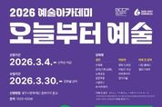 (포탈뉴스통신) (재)광주시문화재단은 광주시민의 문화향유 기회 확대와 예술 감수성 향상을 위해 2026년 예술아카데미 '오늘부터 예술' 수강생을 모집한다. 2026 예술아카데미는 성인 · 어린이 · 시니어 등 다양한 연령층의 수요를 반영 전통예술과 생활예술 디지털 창작을 아우르는 프로그램으로 구성했다. 특히 어린이 강좌는 가족 단위 참여 확대를 위해 ‘따로, 또 같이’ 운영 방식을 강화하여, 아이와 보호자가 함께 방문하여 각자 다른 공간에서 개별 수업을 수강할 수 있도록 운영한다.(※ 보호자 강좌는 수강료 없이 무료로 운영) 성인 강좌는 △수묵화(동양을 담아내는 수묵화) △성악(천상의 목소리, 성악) △궁중무용(전통의 아름다움 궁중무용) △노래교실(함께 부르는 노래교실) △스윙댄스(가볍게 한 스탭, 스윙댄스) △AI(AI 아트워크) 등으로 운영될 예정이다. 어린이 강좌는 △어린이 코딩(우리는 코딩예술가) △창의미술(미술로 마음껏) △명화 드로잉(작은 화가의 명화드로잉) △비트메이커 등으로 운영될 예정이다. 광주시문화재단 오세영 대표는 “예술아카데미 '오늘부터 예술'은 시민이 일상 속에서