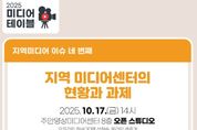 (포탈뉴스통신) 인천 미추홀구 주안영상미디어센터는 오는 10월 17일 오후 2시 센터 오픈 스튜디오에서 ‘미디어 테이블: 지역 미디어센터의 현황과 과제’ 토론회를 개최한다. 올해 네 번째로 개최되는‘미디어 테이블’은 미디어와 사회의 주요 현안을 심층적으로 논의하는 정기 프로그램으로, 이번 토론회는 센터와 (사)전국미디어센터협의회가 공동주최하며, 지역 미디어센터의 지속 가능한 발전 방향을 함께 모색하기 위해 마련됐다. 발제에서는 ▲플랫폼 시대, 지역 사회에서의 미디어센터 역할, ▲운영 지속성 강화를 위한 과제 등이 제시되며, 이어지는 토론에서는 ▲지속 가능한 운영 재원 확보 방안, ▲지자체와 미디어센터 간 정책적 연계 방안이 논의될 예정이다. 현장 참여를 희망하는 주민은 오는 25일부터 센터 누리집을 통해 사전 신청할 수 있으며, 누구나 유튜브 생중계를 통해 온라인으로도 함께할 수 있다. 장구보 센터장은 “지역 미디어센터는 시민의 미디어 접근권을 보장하고, 지역 사회와 함께 성장하는 중요한 기반”이라며, “이번 토론회를 통해 다양한 시각과 경험이 공유돼 앞으로의 발전 방향을 구체적으로 그려갈 수 있기
