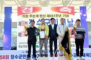 (포탈뉴스통신) 장수군은 지난 23일 장수종합경기장에서 개최된 의암주논개 탄신 제451주년 기념 제58회 장수군민의 날 기념식·제57회 장수군민 체육대회를 성공리에 마무리했다. 장수군민의 날 기념식과 장수군민 체육대회는 우리 군의 대표적인 역사 인물인 의암 주논개의 정신을 되새기기 위해 주논개 탄신일인 음력 9월 3일에 맞춰 해마다 개최된다. 이날 행사는 최훈식 군수를 비롯해 최한주 장수군의회 의장과 의원, 관내 기관·사회단체장, 지역주민, 선수단 등 1,000여 명이 참석하여 그 의미를 더했다. 기념식은 식전공연을 시작으로 △선수단 입장식 △국민의례 △군민헌장 낭독 △시상(군정발전유공자 표창, 장수군 명예군민증 수여, 장수군민의 장) △기념사 및 축사 △논개상 추대자 소개 순으로 진행됐다. 수상자는 지역의 명예를 드높이고 지역 발전에 앞장서 온 정연길(이티바이오텍 대표), 이수민(NH농협 장수군출장소장) 씨에 대한 군정발전유공 시상이 이뤄졌으며 김준오 NH농협 전 장수군지부장은 장수군 명예군민증을 수여 받았다. 또한 제43회 장수군민의 장 수상자인 문화체육장 오재영(남·77세), 산업