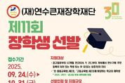 (포탈뉴스통신) (재)연수큰재장학재단은 미래 지역사회를 이끌어 갈 우수 인재 발굴과 양성을 위해 제11회 장학생을 선발한다. 이번 장학생은 ▲복지, ▲특기(개인), ▲특기(단체), ▲연수꿈응원, ▲학업우수, ▲연수큰재(다년간) 등 총 6개 분야에서 지원자를 모집하며, 지원 규모는 약 1억 8천만 원에 달한다. 특히 올해는 장학생 지원 기준을 개선하고 추천권자를 조정하는 등 예년에 비해 보다 폭넓은 학생들에게 기회를 제공하는 방향으로 개편됐다. 선발 절차는 ▲공고 및 접수(9월 24일~10월 31일), ▲서류심사, ▲연수큰재(다년간) 면접 심사 및 선발 심의위원회 심의, ▲재단 이사회 최종 확정 순으로 진행된다. 선발 결과는 11월 말에 발표할 예정으로 자세한 사항은 연수구청 누리집 공고문을 통해 확인할 수 있다. 이재호 연수구청장은 “연수큰재장학재단은 미래 꿈나무들이 자신의 꿈을 마음껏 펼칠 수 있도록 지원하고 있다.”라며 “앞으로도 내실 있는 다양한 장학사업을 통해 교육 기회의 균등과 인재 양성에 최선을 다하겠다.”라고 말했다. [뉴스출처 : 인천시 연수구]