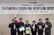 (포탈뉴스통신) 대구 수성구 만촌2동 주민자치위원회는 지난 8일 자매도시인 의성군 춘산면을 방문해 양 지역 간 우호 협력 강화를 위한 교류 활동을 진행했다. 이번 방문은 2023년부터 이어온 양 지역의 자매결연을 기반으로 주민자치 중심의 상생협력을 확대하기 위해 마련된 것으로, 주민자치위원과 12개 협력 단체 회원 등 30여 명이 참석했다. 방문단은 지난달 개소한 춘산어울림공간에서 공식 환영 행사와 시설 관람을 진행하며 교류의 의미를 나눴고, 향후 협력 확대 방안도 함께 논의했다. 또한 양 지역의 특색을 담은 기념품 교환도 이뤄졌다. 만촌2동은 수성구 대표 캐릭터 ‘뚜비’ 인형과 지역 전통주 ‘느지골 오양주’를 전달했으며, 춘산면은 목재문화체험장에서 제작한 냄비 받침과 금성농협 압맥을 선물하며 따뜻한 환대의 뜻을 전했다. 박영환 주민자치위원장은 “2023년부터 이어온 두 지역의 인연이 해를 거듭할수록 더욱 깊어지고 있어 뜻깊다”며 “앞으로도 주민 중심의 실질적 상생협력이 지속될 수 있도록 적극적인 교류 활동을 이어가겠다”고 말했다. 만촌2동과 춘산면은 앞으로 주민 대상 공연