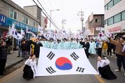 (포탈뉴스통신) 양주시가 1일 가래비3·1운동순국기념사업회 주관으로 양주시 광적면 소재 3·1운동 기념공원에서 '제107주년 양주 가래비 3·1운동 기념식 및 재연행사'를 개최하고 순국선열의 숭고한 희생정신을 기렸다. 이날 행사에는 양주시와 양주시의회, 경기북부보훈지청, 동두천양주교육지원청, 농협은행 양주시지부 등 기관 관계자와 독립유공자 유가족, 보훈단체 관계자, 사회단체장, 시민 등 600여 명이 참석했다. 행사는 국민의례를 시작으로 독립선언서 낭독, 기념사, 삼일절 노래 제창, 만세삼창, 기념공연, 거리만세행진 순으로 진행됐다. 기념 공연으로는 1919년 가래비 만세배미 현장을 재연한 창작 뮤지컬 ‘기억하라! 그날!’과 양주시립합창단 공연이 이어졌다. 시민들은 가래비 일대에서 전개됐던 만세운동을 재연하는 거리만세행진에 참여해 태극기를 흔들며 “대한독립 만세”를 외쳤다. 행사장에는 관내 독립운동가를 알리는 전시와 함께 시민이 태극기에 순국선열을 향한 감사와 소망의 메시지를 남기는 ‘시민 참여 보훈문화행사’도 마련됐다. 완성된 태극기는 양주시청 3층 갤러리에 전시될 예정이다. 강수현