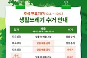 (포탈뉴스통신) 경산시는 추석 연휴기간 중 시민불편을 최소화하기 위해 9월 22일부터 10월 9일까지 “생활쓰레기 처리 종합대책”을 추진한다고 29일 밝혔다. 시는 추석 연휴 전까지 환경정비를 실시하여 배출된 쓰레기는 전량 수거 처리할 계획이다. 연휴 기간 중 시청 종합상황반과 읍‧면‧동 기동 청소반을 설치하고 쓰레기 수거 5개 권역 대행업체도 긴급운영반을 편성‧운영해 긴급한 쓰레기 민원을 신속히 처리하여 시민 불편이 발생하지 않도록 관리할 방침이다. 또한, 쓰레기 처리시설 및 수거 대행업체 휴무로 연휴 기간 중 10월 5일부터 10월 6일은 쓰레기 수거가 중단됨에 따라 이날 발생된 쓰레기는 가급적 배출을 자재하고 가정에 보관했다가 수거 전날에 배출해 줄 것을 당부했다. 특히, 추석 다음 날 쓰레기가 한꺼번에 몰려 배출될 것이 예상됨에 따라 쓰레기 수거 5개 업체에서 청소 인력과 장비를 총동원하여 쓰레기를 전량 수거‧처리할 예정이다. 시 관계자는 “추석 연휴가 개천절 및 한글날을 포함해 7일간 지속됨에 따라 쾌적하고 깨끗한 명절 분위기 조성을 위해 무단투기를 자재하고 각 가정에서도 쓰레기 배출량 최